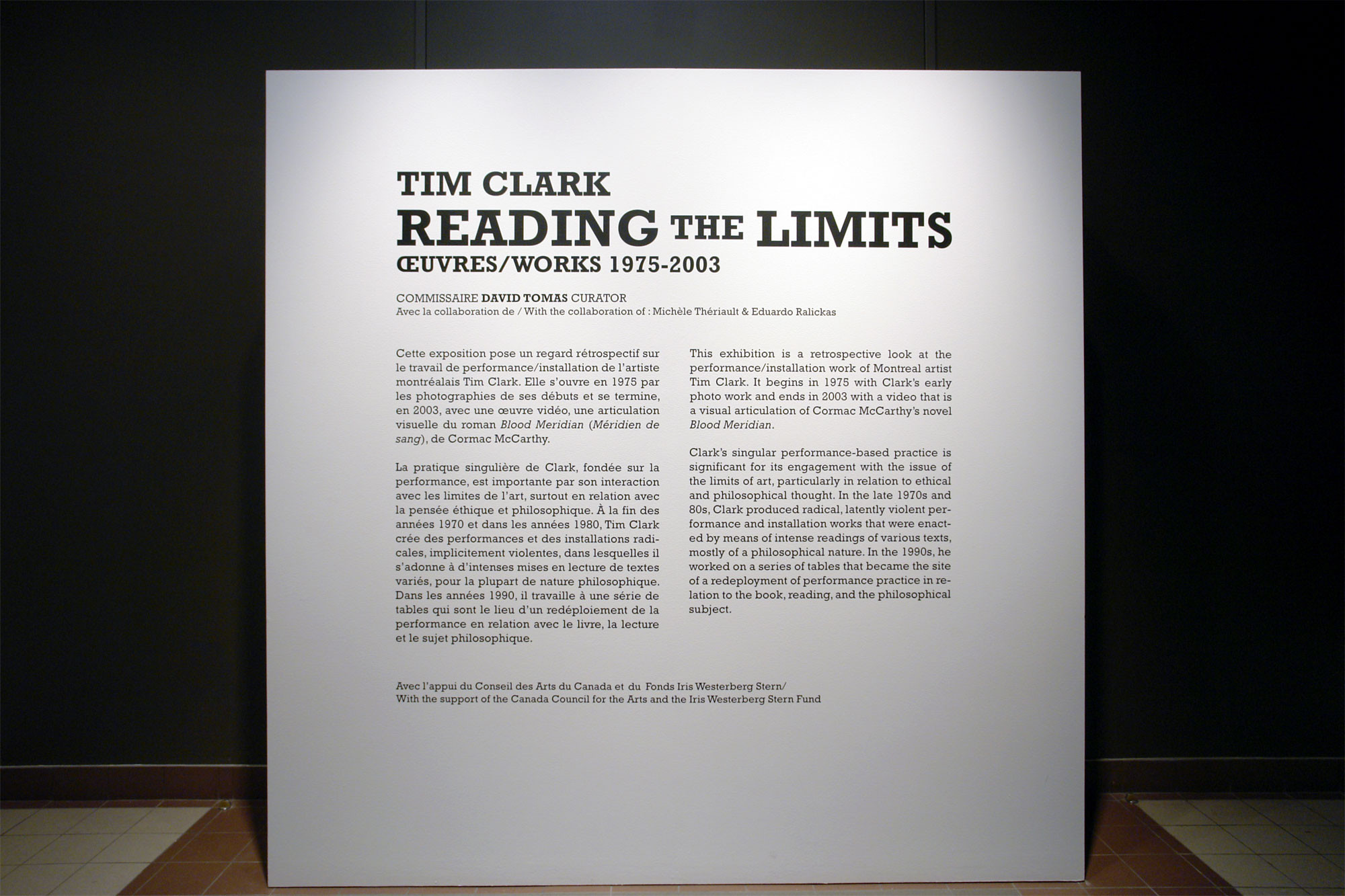 Tim Clark, Reading the Limits: Works/Oeuvres 1975-2003,